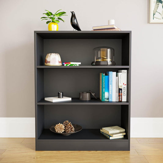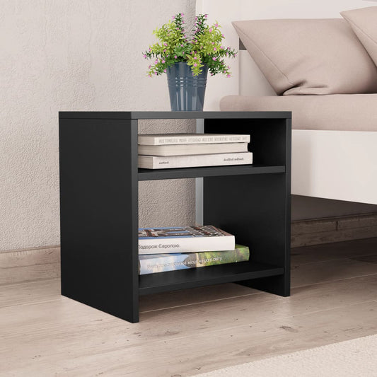 Modern Bedside Table with Storage Shelves - Black